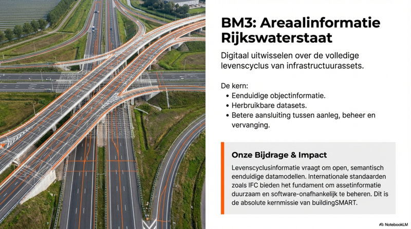 Dit is een directe toepassing van openBIM in nationale infrastructuur. IFC als uitwisselformaat en gestructureerde datadiensten versterken de positie van open standaarden in de praktijk. BM6 laat zien hoe internationale standaarden lokaal kunnen worden ingezet voor voorspelbare ketensamenwerking.