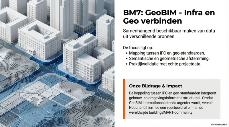 Internationaal wordt GeoBIM steeds belangrijker. De koppeling tussen IFC en geo-standaarden versterkt de integratie tussen gebouw- en omgevingsinformatie. Nederland kan hierin een voorbeeldrol vervullen binnen de wereldwijde buildingSMART-community.