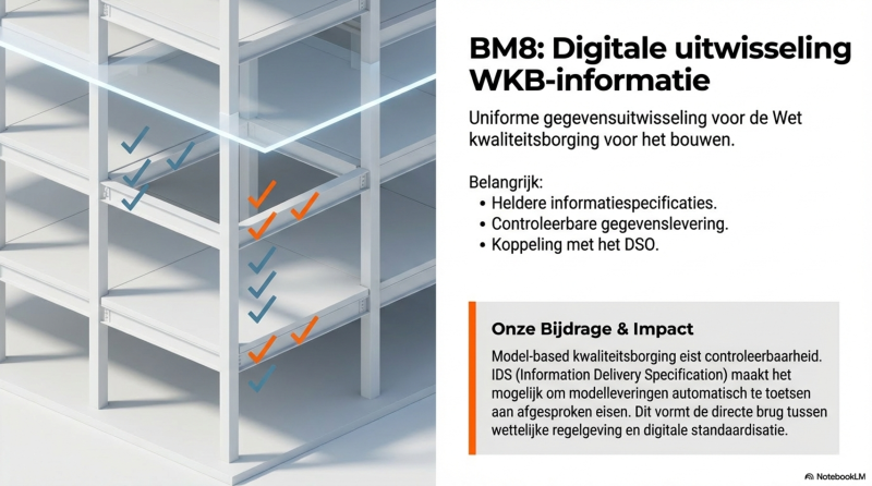 Beleidsmaatregel 8 richt zich op de uniforme digitale uitwisseling van informatie in het kader van de Wet kwaliteitsborging voor het bouwen (WKB).
