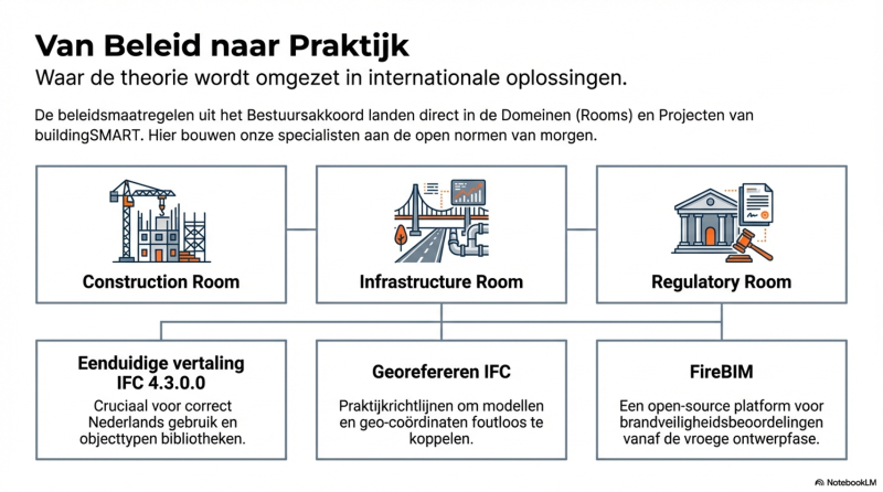In dit artikel zetten we de verschillende beleidsmaatregelen waaraan buildingSMART Nederland een inhoudelijke bijdrage levert op een rij.