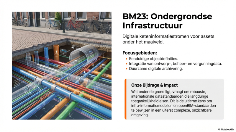 Ondergrondse infrastructuur vraagt om robuuste, internationale datastandaarden die langdurige toegankelijkheid garanderen. Hier ligt een duidelijke kans om infra-informatiemodellen en openBIM-standaarden verder te versterken.