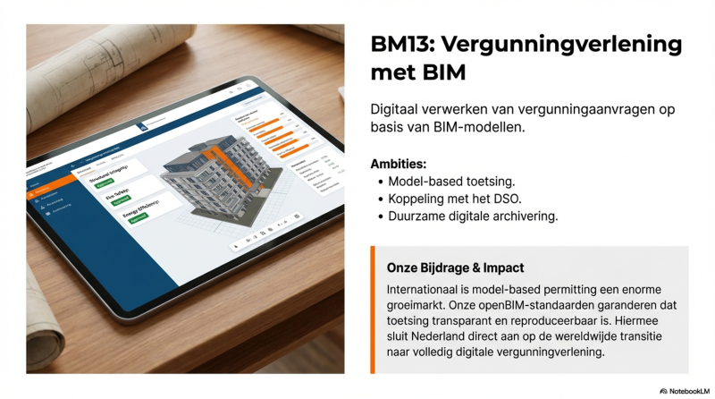 Beleidsmaatregel 13 richt zich op het digitaal verwerken van vergunningaanvragen op basis van BIM-modellen.
